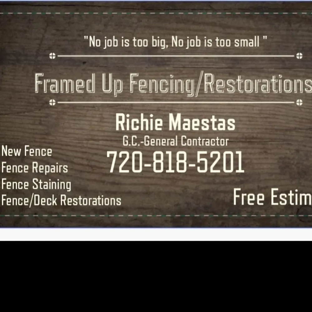 Hello, my name is Richie. I am the owner of Framed Up Fencing and Restorations LLC. We specialize in deck restorations, fence restorations, fence repairs, and new fencing, gates etc. Here at Framed Up, We take pride in our craftsmanship and can guarantee to bring your vision to life on any fence project or deck restoration you may have. All work is backed by a warranty and 100% Cedar material. "No job is too big, no job is too small! All you have to do is just give us a call"! 720-818-5201 for a estimate on your project!